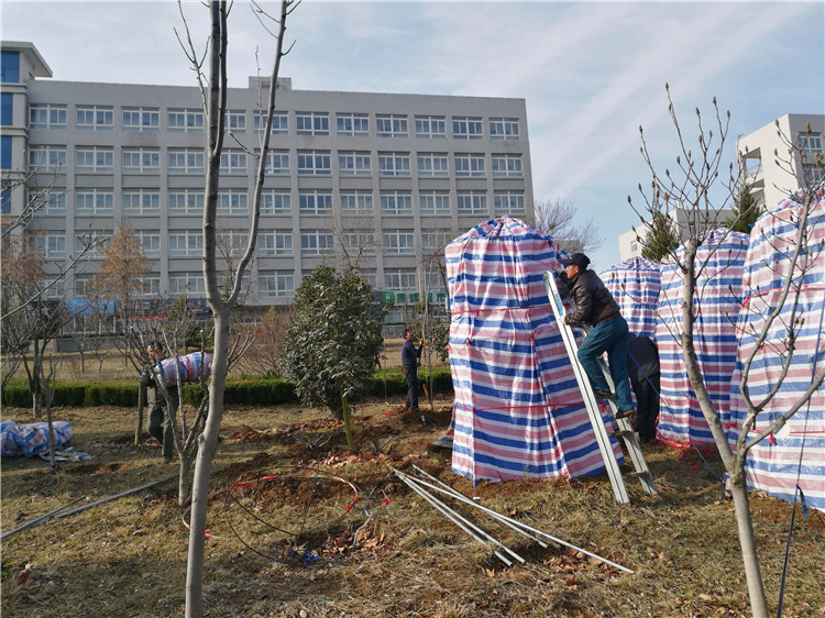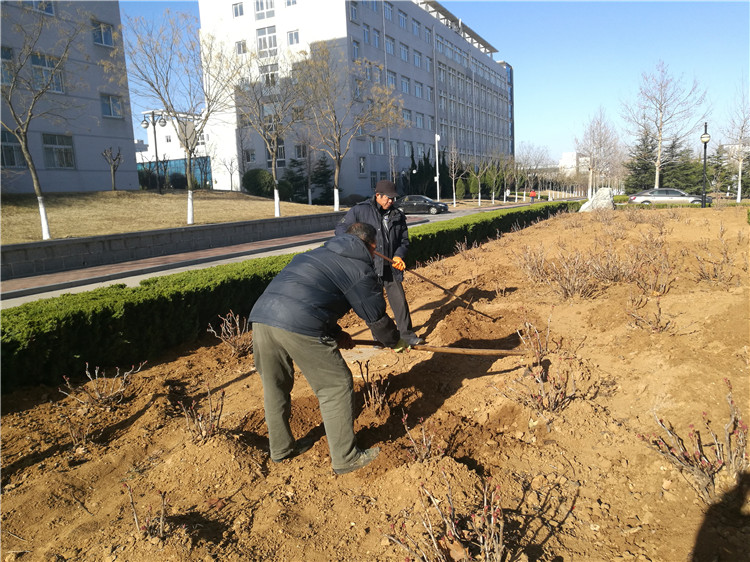 清理枯叶、剪枝塑型,松土翻整、修剪残枝,摘除树木越冬防护罩,浇灌回春水,对牡丹园、月季、茶花等树木进行追肥,促进树木生长……“一年之计在于春,春天就是劳动开始的季节,有了早春的忙碌,才有其他季节的收获”、“这里的一花一草,就像是我们的孩子,经过自己双手的打理,想着几个月后生机勃勃百花争艳的校园风光,我们也很是骄傲。”几位正在作业的绿化工人朴实的话语,一直萦绕在我们的耳边。