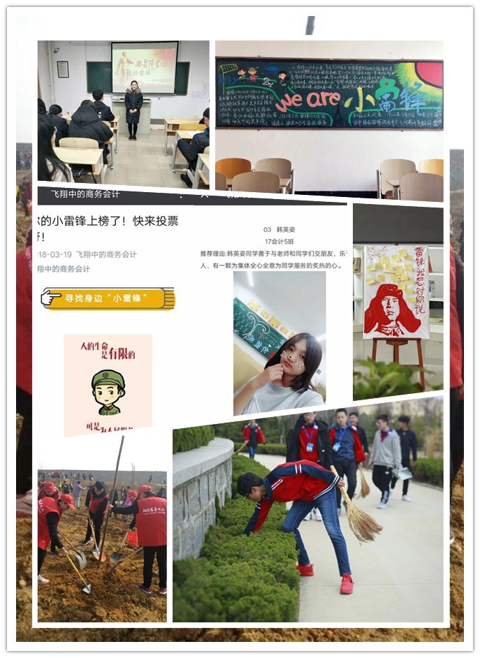 据了解,今年雷锋月期间,学校组织开展了“致敬雷锋,暖心校园”主题教育团课;“文明城市,你我共建”社会公共环境清洁;“践行雷锋精神-感恩十七路”活动;“春暖三月,真情永传”雷锋足迹征文比赛;“种下新绿,播种希望”植树节活动;“弘扬雷锋精神,引领青年风尚”班级海报设计评比;“爱在商院传播温暖”走进敬老院;“义务维修家电”服务进社区;雷锋主题书展、“寻找身边雷锋”我为雷锋精神代言、“小红帽结行李”志愿服务活动等大大小小近百余场活动,鼓励师生以实际行动,从身边小事做起,传播助人火种。