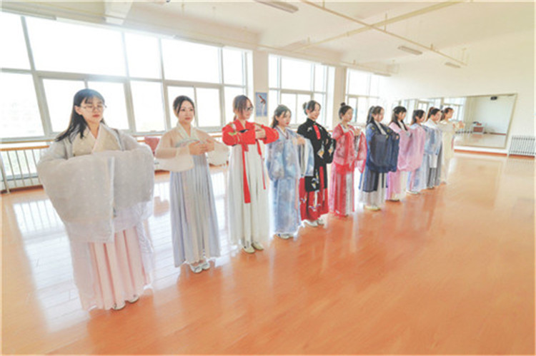 据了解,该校青青子衿汉服文化社团于2015年正式成立,短短不到三年,该社团已由最初几个人发展成为三四十人的星级社团。他们通过组织活动,身体力行地推广着传统文化。在“元宵”“清明”“端午”“中秋”“重阳”“等传统节日他们穿上传统服装,并模仿古人登高、包粽子、诵读、乞巧等活动,为同学们讲解传统文化知识。社团的表演。“每年新生军训、迎新晚会、各类晚会和日常大大小小的活动上,都会有我们的身影。”现任社长、会计系16级审计一班的刘雅萱笑着说,一年参加多少活动自己也数不清。