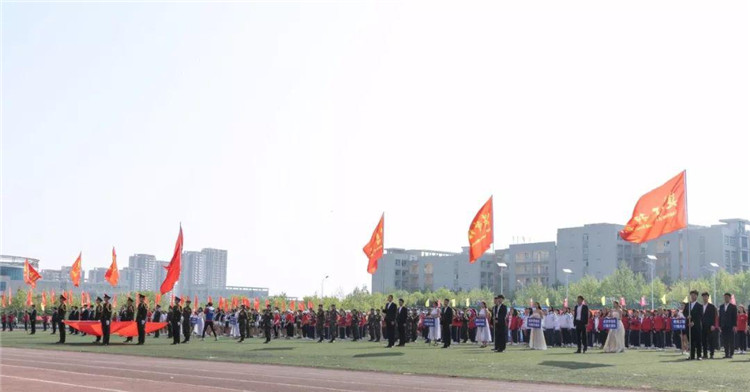 杨新春院长在开幕式上致辞。他首先代表学校及运动会组委会,向本届运动会的胜利开幕表示热烈的祝贺。向精心筹备本次赛会的所有工作人员表示诚挚的谢意。向积极参赛的运动员以及辛勤付出的裁判员表示亲切的慰问。他指出,本届运动会以“凝心聚力,争先创优”为主题,将全面展示出我校上下全力争创优质高职院校的良好精神面貌。学校体育工作是实现“健康中国”的有力保障和基础性工程,蕴含着健康与教育两大国家战略,具有极其重要的意义。他提到,过去的一年里,我校学子积极参加全国全省各类体育竞赛,成绩斐然,2017年,在“全国大学生武术散打锦标赛”中,张书宽同学斩获80公斤级铜牌,实现我校参加全国体育赛事的开门红。在全省大中小学生体育联赛乒乓球比赛中,我校共获得1枚金牌、2枚银牌、1枚铜牌,同时斩获女子团体金牌、男子团体铜牌。在全省大学生田径锦标赛中,我校也创下了4金7银5铜的优异成绩。在其他全省大学生排球、篮球联赛中,我校同样名列前茅,表现突出。他希望,各位参赛运动员充分发扬顽强拼搏、不怕困难的体育精神,坚持“友谊第一,比赛第二”的原则,规范参赛、文明参赛,赛出水平、赛出风格;希望所有裁判员同志秉承“公平、公正”的准则,恪尽职守,认真履行岗位职责;同时希望全体同学遵守大会纪律,做文明观众,各系部、班级要加强管理,做好后勤服务工作,共同营造热烈和谐的赛场氛围。最后,他预祝所有参赛运动员们能够突破自我、创造佳绩。预祝本届田径运动会取得圆满成功!