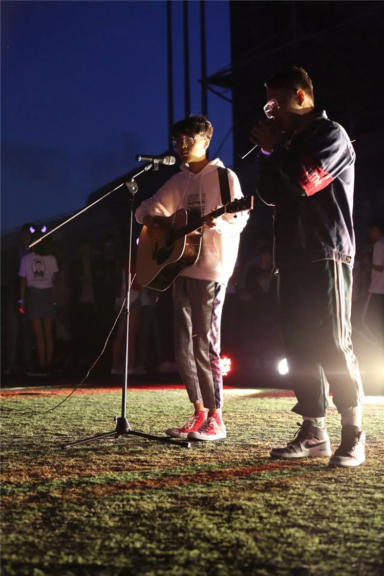 草地音乐节在建筑系T9舞蹈队热情洋溢的开场舞中拉开了帷幕,劲爆的舞蹈加上耀眼的灯光瞬间点燃全场。歌曲《我是一只小小鸟》,歌手嘹亮的嗓音收获了观众们热烈的掌声;双截棍社团献上的荧光焰火双截棍表演展示传统武术的魅力;在备受好评的神秘表白环节,观众上台表达最诚挚的感情,原创音乐社献唱最近大火的《后来》及《婚礼的祝福》,围坐的观众们挥舞着手中的荧光棒轻声合唱……
