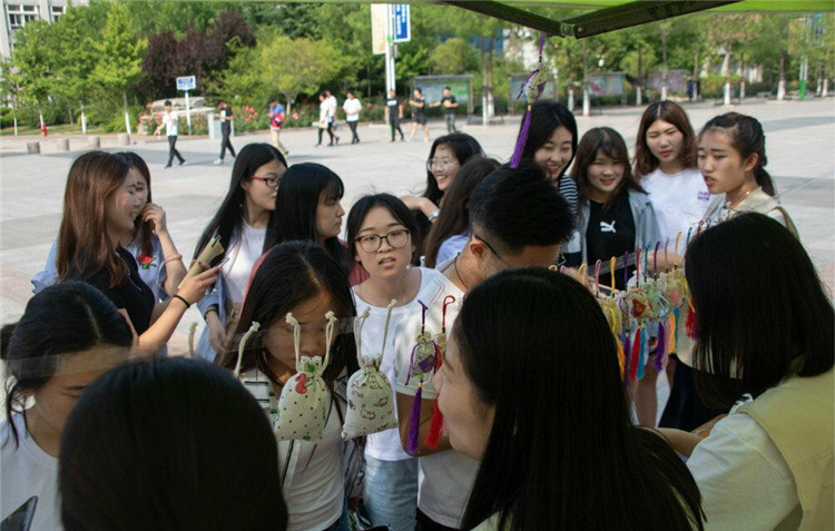 据了解,该校每年都会利用中国传统节日节点,开展师生喜闻乐见的系列活动,弘扬优秀文化传统,丰富师生们的校园生活。今年端午节期间,主题班会、制作香囊、端午微征文、免费发粽子、端午诵读、端午晚会等活动将在端午节到来之前相继举办。17级会计七班徐佳君同学表示:“香囊很漂亮,价格也不贵,夏天还能驱蚊,更重要的是通过这种方式可以让大家奉献爱心,觉得挺有意义的。”