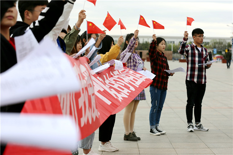 这次快闪活动是由我校机关党总支第二党支部策划的一次主题党日活动,学校机关党总支第六党支部、建筑工程系学生党支部、建筑工程系18市政班、经济管理系部分学生等参与活动,以迎接中华人民共和国成立70周年和纪念五四运动100周年为契机,师生们用快闪演出的方式,为春天的中国朗读,用歌声祝福祖国,抒发对党和祖国的满腔热爱,表达了用青春奋斗的昂扬姿态报效祖国的坚定信心和崇高信念。(宣传部)