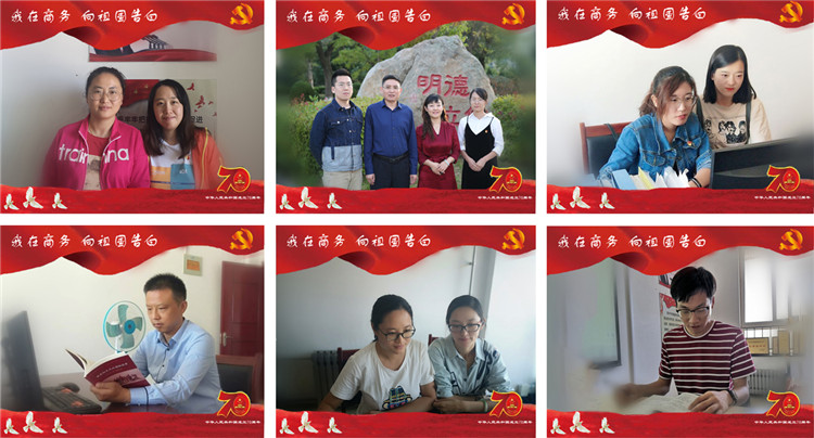 本站讯 为热烈庆祝中华人民共和国成立70周年,结合开展“不忘初心、牢记使命”主题教育工作,机关第八支部紧密结合工作实际,开展主题为“我在商务,向祖国告白”的特色庆祝活动,弘扬爱国精神,向祖国母亲真情告白,表达自己的赤诚之心。支部向下设部门的全体党员和教师发起号召:坚守工作岗位,服务师生,尽职尽责履行岗位职责。教务处、成人教育处、教师发展中心全体党员及教师在完成业务工作的同时不忘开展学习,纷纷在各自的工作岗位上向祖国母亲表白。