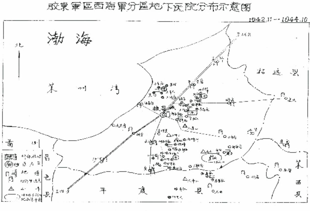 1942年11月初,为应对日伪军对大泽山抗日根据地的“拉网扫荡”,西海军分区决定将卫生所等撤出大泽山区,分批转移到掖南县郝家、临疃河、柞村等近40个村庄,隐蔽开展工作,军民称为地下医院。地下医院共设6个医疗区,北掖有王门、朱旺、西北障3个医疗区,南掖和南招各设一个医疗区,在大泽山所里头村设立休养区。中心医疗区位于王门,收治重病号伤员。朱旺医疗区和西北障医疗区属于绝 密区,离敌人据点最近地方不足5里,南掖医疗区则救治一些轻伤员。这些医疗区横跨40多个村庄,每个村庄都挖有地道、地洞,用于伤员临时隐蔽。