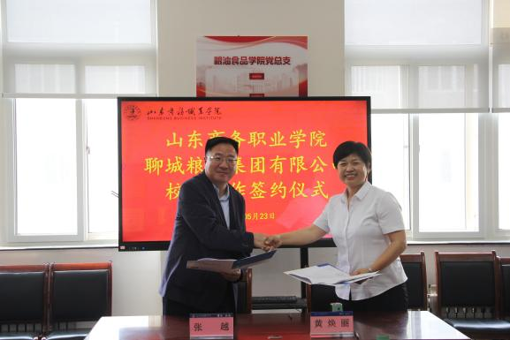 本站讯 为进一步加强校企合作,寻求校企共赢、共谋发展的良好局面,5月23日上午,我校粮油食品学院与聊城粮盐集团开展校企合作签约仪式。学校党委副书记张越、粮油食品学院院长黎海红、副院长邵珍美、教师代表刘亚楠、聊城粮盐集团副总经理黄焕丽、人力资源部部长王秀萍参加会议。