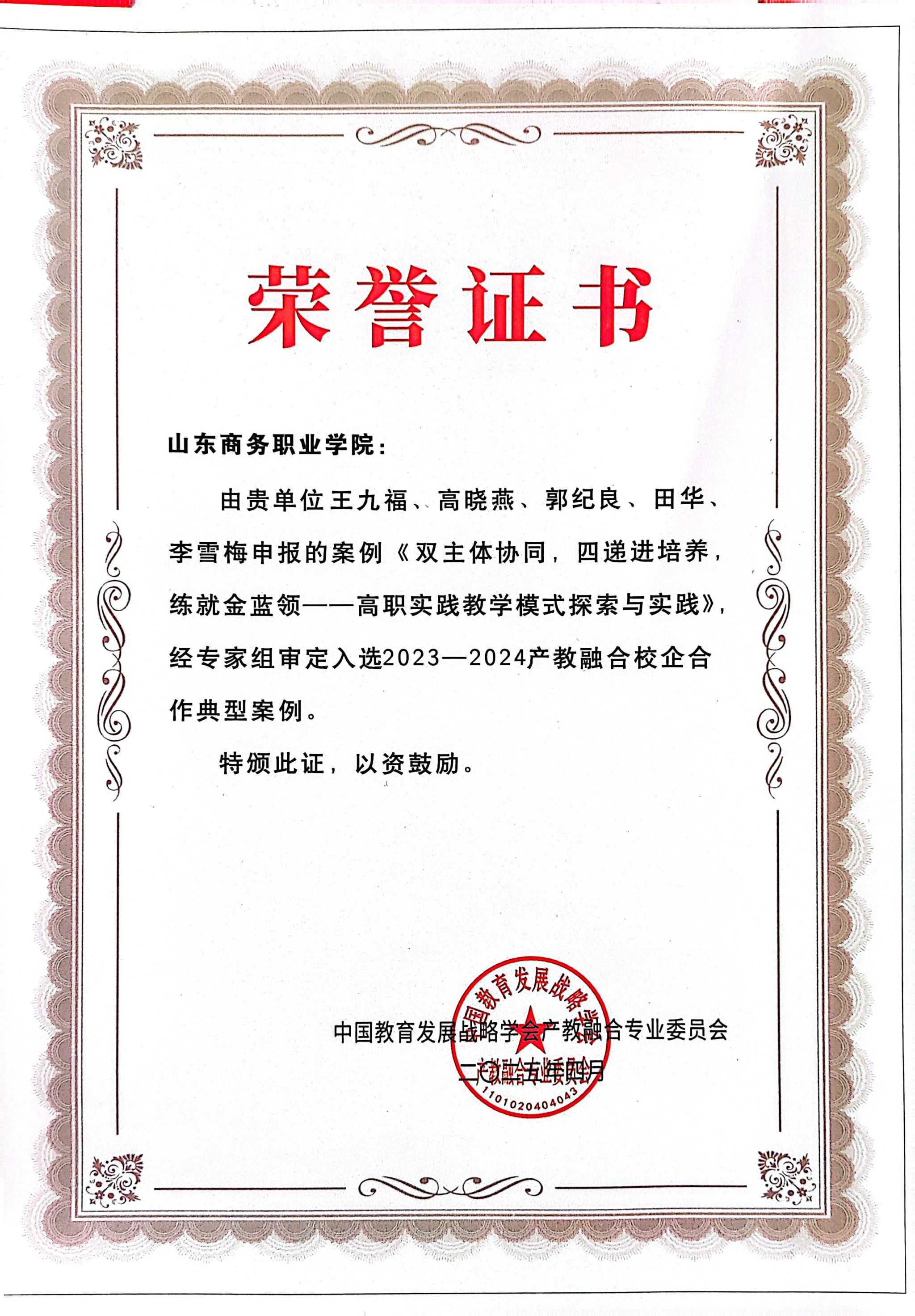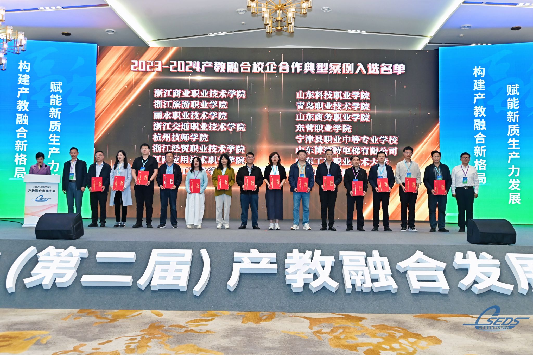 与会嘉宾围绕大会主题“构建产教融合新格局 赋能新质生产力发展”,通过主题报告、高端对话、专题交流等形式,共同探析产教融合难点痛点,共同寻求产教融合问题对策,助推教育强国建设,赋能新质生产力发展。大会现场,举行了2023—2024产教融合校企合作典型案例证书颁发仪式,我校信息工程学院提交的“双主体协同,四递进培养,练就金蓝领——高职实践教学模式探索与实践”获评典型案例,王九福上台领奖。