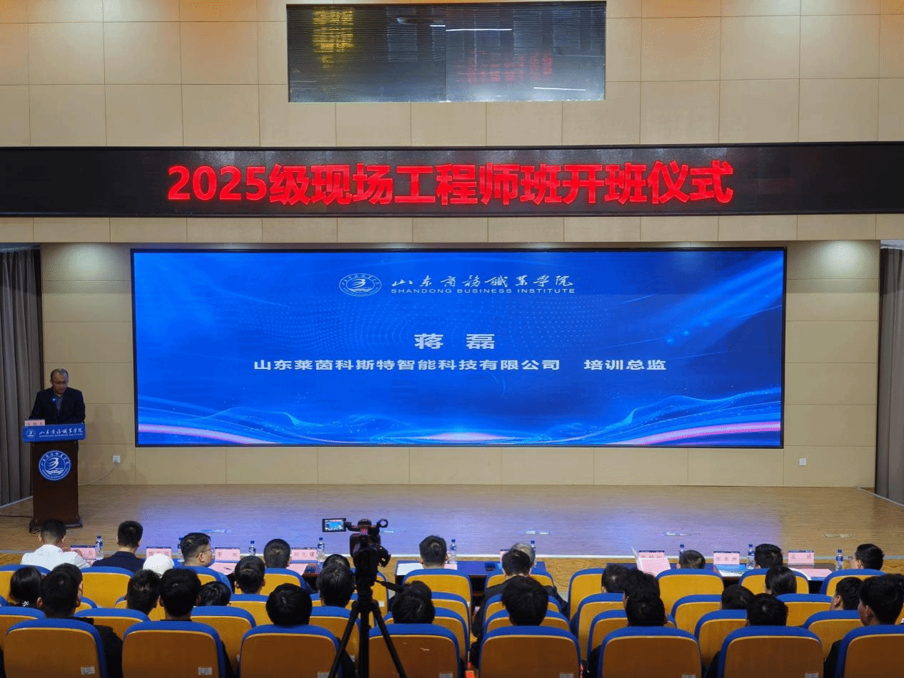 本站讯 10月14日,“2025级现场工程师开班仪式暨粮机智能装备应用产教融合共同体推进会”在我校举行。学校党委委员、副校长孙玉林,山东华宇航天空间技术有限公司、山东莱茵科斯特智能科技有限公司、烟台艾迪艾创机器人科技有限公司、威海市顺捷精密模具有限公司等企业代表,2025级现场工程师班全体师生,共300余人参加会议,共同见证这一深化人才培养模式改革、服务产业创新发展的重要时刻,仪式由智能制造学院党总支书记时登华主持。