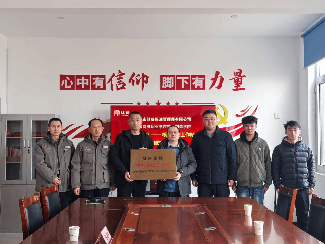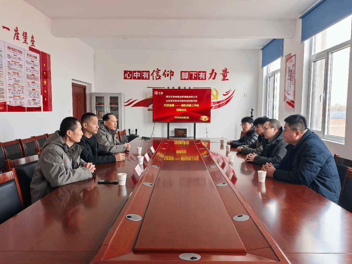 随后,校企双方共同为“红匠金粮—粮机运维工作站”揭牌,标志着学院与菏泽市储备粮油管理有限公司的校企合作迈入深度融合、精准赋能的新阶段。戴通表示,菏泽市储备粮油管理有限公司作为保障区域粮食安全的骨干企业,始终聚焦粮储装备智能化、管理规范化建设,此次与山东商务职业学院共建粮机运维工作站,既是企业破解技术瓶颈、强化人才储备的迫切需求,也是深化校企合作、实现互利共赢的重要举措,希望以工作站为纽带,持续深化双方合作,借助学校的人才、技术优势,推动粮储装备技改升级、人才培养提质,共同为区域粮食安全事业发展贡献力量。学院相关负责人表示,学校将以工作站为平台,立足企业发展需求,整合优质教学、科研资源,聚焦粮机运维、技改创新、人才培养等核心领域,精准对接企业需求,推动产教深度融合,助力企业提升核心竞争力,培育更多适应粮储行业发展的高素质技术技能人才。
